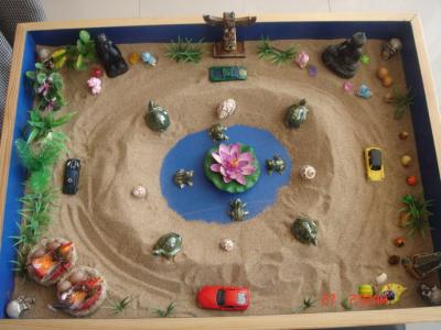 沙盘的创作过程即是对思维的拓展,促进内部言语的发展,在一个轻松自在的过程中通过对沙盘内容的描述中可促进语言表达能力。